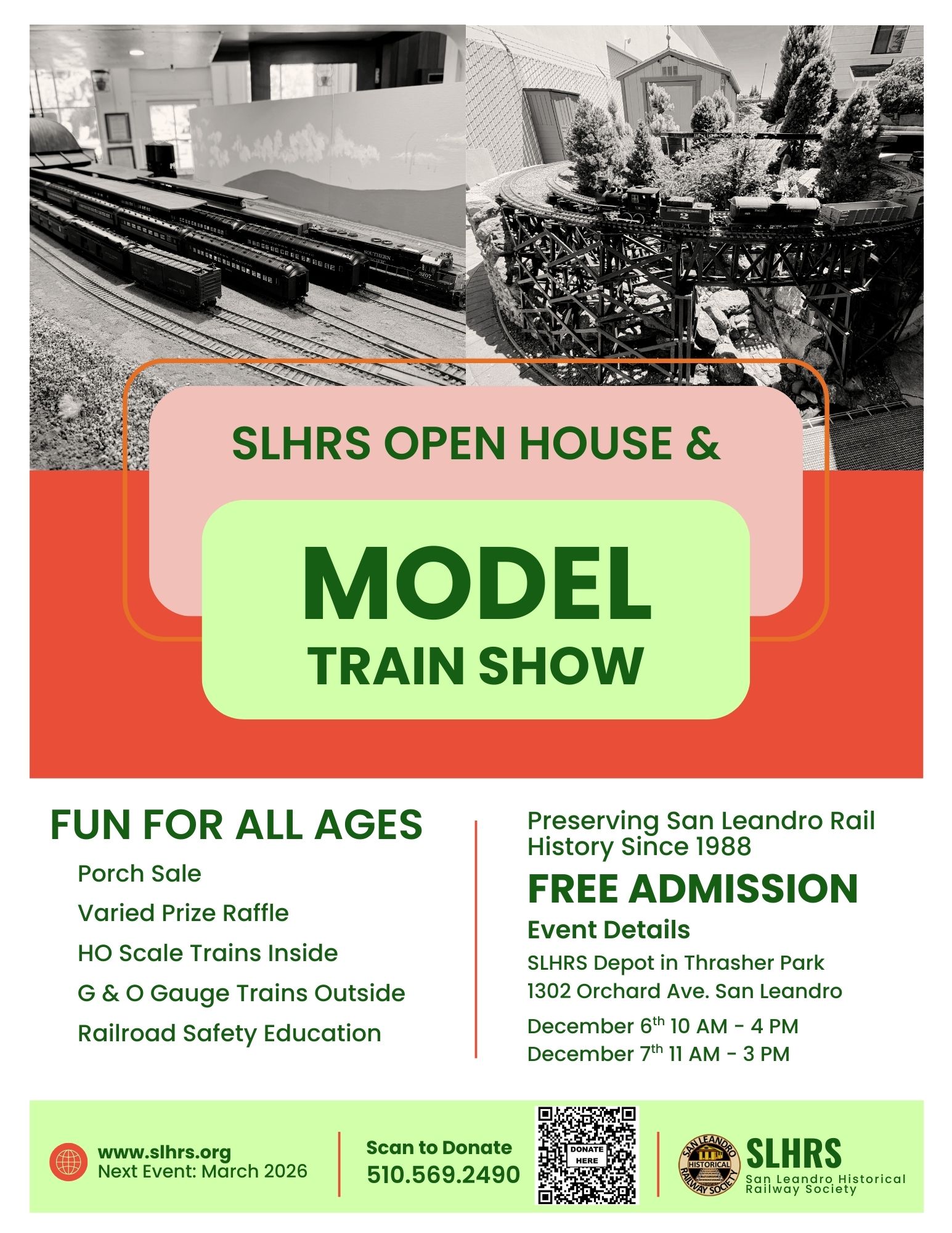 - Holiday Train Show & Open House: Saturday, December 6, 2025 from 10:00 am to 4:00 pm and Sunday, December 7, 2025 from 11:00 am to 3:00 pm. Download our 2025 Holiday Show Flyer!